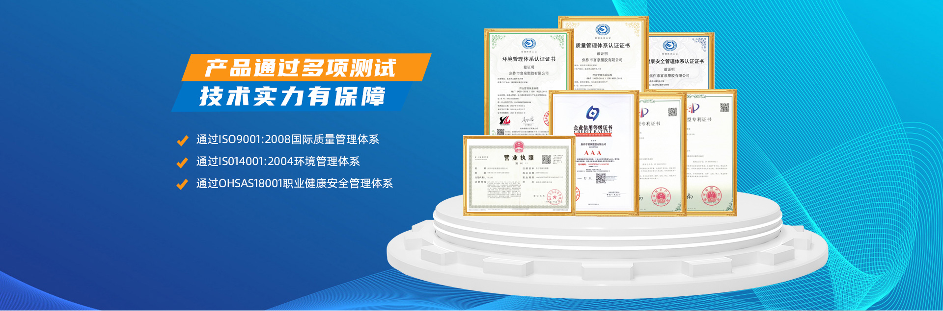 - 焦作市富泉塑膠有限公司,創立于1995年,是一家集研發(fā)、設計、生產、銷售為一體的大型管材企業。公司位于太極故里、黃河之濱一一河南焦作溫縣。公司占地128畝,現有職工210余人,其中具有中技術職稱的19人。生產、檢驗設備58臺(套),包括PVC實壁管生產線11套、PE實壁管生產線12套、HDPE雙壁波紋管生產線6套、PVC雙壁波紋管生產線5套,檢驗設備14臺(套)。主要產品有:Φ20mm-630mm、各種壓力規(guī)格的PVCU、PVC-M、PE給水管材,PVC-U節(jié)水灌溉管材,HDPE燃氣和礦用管材,DN200-800mm的HDPE、PVC雙壁波紋管及各種噴灌、滴灌工程材料。承接大中型市政供排水、飲水安全及節(jié)水灌溉等工程?! 「蝗苣z公司重視產品的質量、安全、環(huán)保和節(jié)能,在同行業中率先完成了“新華節(jié)水產品認證”,全方面通過ISO9001:2008國際質量管理體系、IS014001:2004環(huán)境管理體系和OHSAS18001職業健康安全管理體系的一體化導入,并建立起規(guī)范的現代企業管理體系。公司以“質量”為先導,采用質量跟蹤、多環(huán)節(jié)把關的方法,組建具有行業水準的企業技術檢測中心,常年委托水利部節(jié)水灌溉設備檢測中心、河南省產品質量監(jiān)督檢驗院對產品跟蹤檢測,并由中國人民保險公司承保產品質量。公司連續多年被河南省水利廳確定為“安全飲水設備、節(jié)水灌溉設備”定點生產企業,并獲得“中國名優(yōu)產品”“質量、服務、信譽AAA企業”“河南省**產品”“河南省水利企業”“河南省守合同、重信用企業”等榮譽稱號。 富泉塑膠公司堅持“用戶為上”的服務理念,長期以來,全方面關注客戶價值,不斷提升服務水平。服務隊伍常年為客戶的產品設計、施工、安裝提供合理的方案和全程細致、周到、**、快捷的技術服務。公司自成立以來,一直堅持以人為本的宗旨,塑造企業形象,并致力于新產品的開發(fā),憑借雄厚的技術開發(fā)能力,先進的工藝制造流程,嚴格的質量管理保證體系,優(yōu)良的售后服務網絡,已成為河南省大的飲水、灌溉及排水管材設備制造商。產品暢銷全國,而且還以公司雄厚的綜合實力在業界中占據著重要的地位。